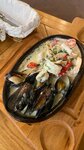 Безумно вкусно 😋. Мне у нас в центре Ростова знакомая в ресторане сказала, что тут самые лучшие морепродукты в соусе, но они даже близко не стояли с тем, что я тут поела! Вообще придраться не к чему. Даже девушка, которая нас обслуживала, очень общительная, вежливая, креативная и достойная. Атмосфера тоже соответствует! Обычно я фотографирую все блюда, а тут вспомнила о фото только когда уже всё поели 🤣, настолько вкусно было