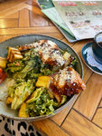 Кафе хорошее, официанты молодцы. Обедаем / ужинаем здесь уже год, но работа поваров оставляет желать лучшего. Структура блюд или их граммовка отсутствует. Овощной салат: то с луком, то без; то на лепешке, то без. Каждый раз приносят разный вариант блюда. Хотя цена всегда одна и та же. Так же с том ямом, то острый, то сливочный; то 2 креветки, то 3; то есть в составе курица, то принесли вообще без. Попросили переделать, потому что цена одна, а состав другой. Принесли, добавили ингредиент, но от том яма только название. В блюде одни сливки. Перезаказали на борщ, а ПОВАР отказался делать нам его. Причина? Её нет, нет старшего официанта, нет менеджера, нет ген. директора на месте или руководителя. Уточнение, мы не просили удалить эту позицию, просто заказали другой суп, а получили отказ. Официант тоже ничего не может сделать, но это понятно, не его полномочия. Но положенная техническая карта приготовления блюд отсутствует. Не хочется сюда приходить больше, спасибо поварам, у которых нет смелости даже объяснить причину отказа. ЕГО ДЕЛО ПРИГОТОВИТЬ ПО ГРАММАМ И ОТДАТЬ КАК НУЖНО БЛЮДО, а не понты колотить. 2 звезды за атмосферу и за официантов, но благодаря смелому повару о 5 звезд пусть только мечтают.