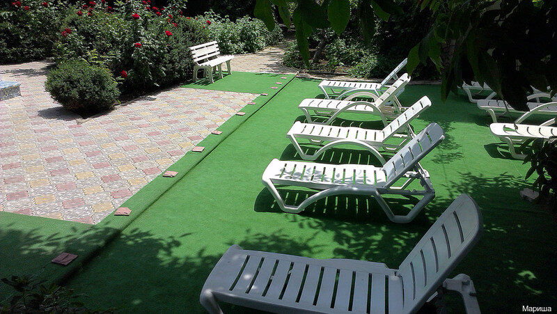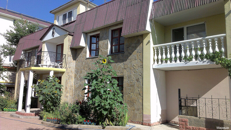 Достаточно удобноное расположение: недалеко автобусная станция, городской рынок, рядом новый рынок для туристов, до моря меньше 50 метров. Территория гостевого дома ухоженная, много зелени, есть небольшой бассейн, зона барбекю и зона для приняти солнечных ванн, небольшая парковка. Из обслуживания: постельное белье, полотенца, горячая и холодная вода, общая кухня и посуда. В целом чисто и достаточно уютно. Рядом расположено большое количество кафе, так что кто не хочет готовить, тот голодным не останется. Кто рассчитывает на первоклассный отдых по системе все включено - это не сюда, но если хочется спокойного и бюджетного отдыха, то это вполне подходящее место.