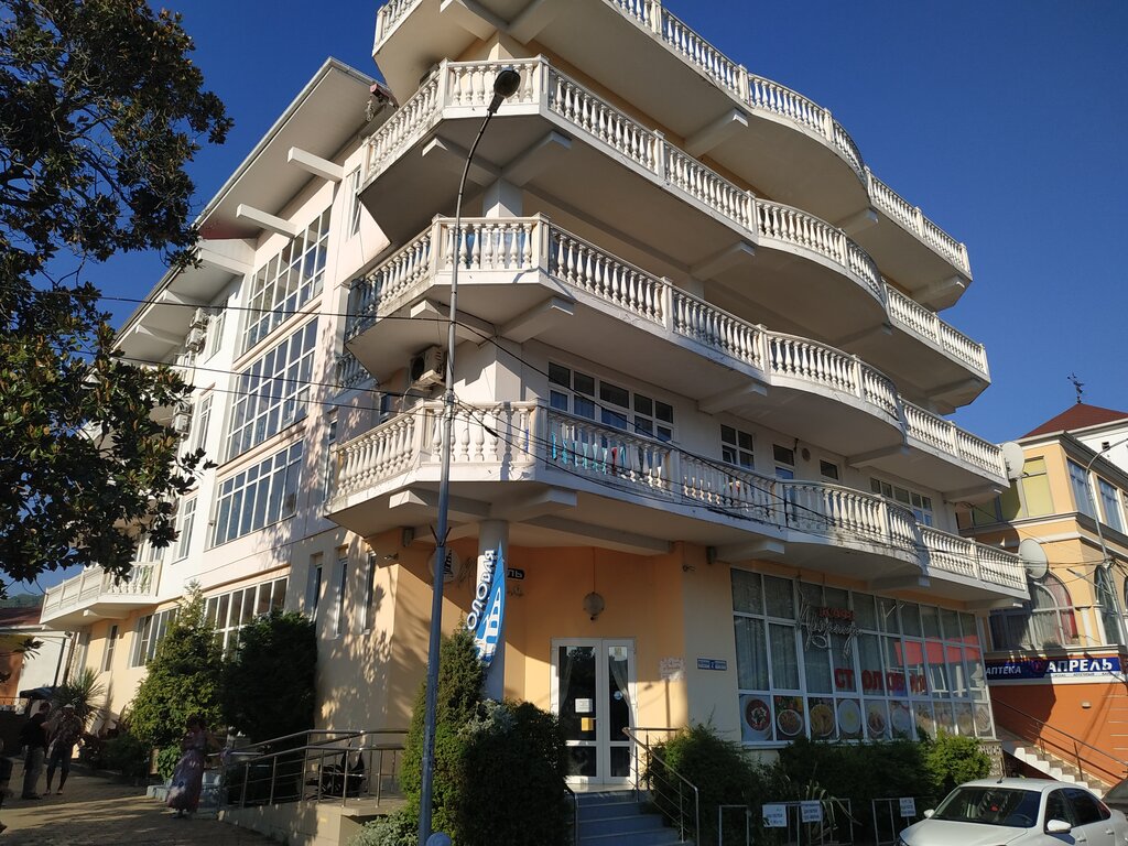 Отдыхаем здесь каждый год, много лет. Супер расположение, рядом море, вокзал, откуда можно добраться и в я Сочи, и в Розу, и в Олимпийский парк. При этом нет толп, как в Сочи даже в сезон. Ооооочень вкусно готовят👍🏻 на 1 этаже есть своя столовая. Номера чистые, на каждом этаже кулер, гладильная доска, зона отдыха, есть номера с балконами и есть ещё общие балконы со столиками, бильярдом. Есть лифт, что огромный плюс (всего 4этажа). До моря пару минут, есть много вариантов пляжей рядом, есть из чего выбрать (и городской, и частные по норм стоимости), рядом много кафе и ресторанов