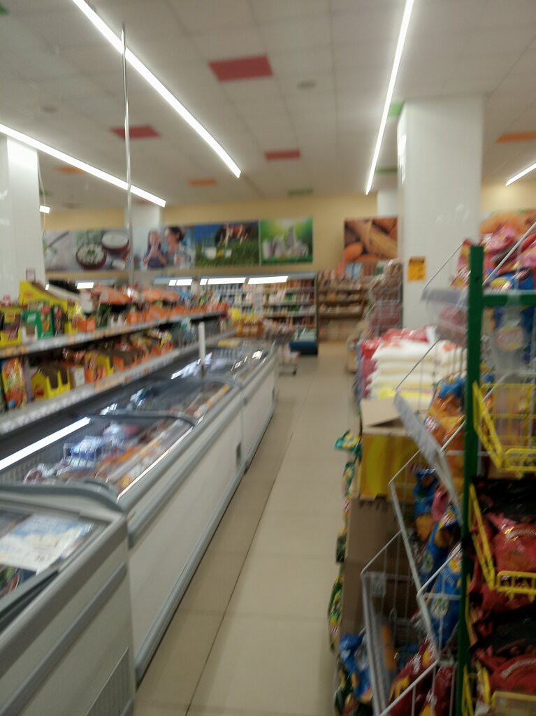 Неплохой магазин, ассортимент кстати здесь больше, чем в других точках. Светло, чисто. Площадь маленькая, особенно в крупные праздники не протолкнуться, да и после рабочего дня такая же история! В очереди на кассе можно прочитать роман "Война и мир", от корки до корки. Сотрудники магазина как загнанные лошадки (простите, никого не хочу обидеть), надо и товар разложить и ценники поменять, сбегать на склад, проверить просрочку, успеть постоять на кассе, проконсультировать какую-нибудь подслеповатую глухую бабульку... И по классике: работает одна касса.