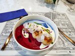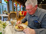 Были в этом заведении в понедельник, пришли мы первые, но потом народ начал подтягиваться. Муж заказал утку, я щучьи котлетки (или тефтели?) со свекольным пюре и сливочным соусом. От блюд мы в восторге! Самые простые продукты были приготовлены оригинально и с большим вкусом. Также заказали бутылку вина, которую подали на отдельной стойке в ведерке со льдом . Особенно я была впечатлена свекольным пюро - абсолютно гладкое, мягкое, отлично сочетается с щучьими тефтелями и соусом. Мужу очень понравилась утиная голень, волокна хорошо отделялись,, вкус мяса насыщенный (по-моему у них в группе предприятий есть утиная ферма!). Когда мы все съели и уже собирались уходить, официант (кстати, очень достойный молодой человек, спокойный и знающий) предложил десерт и рекомендовал десерт "Три яблока", который держится в меню несколько лет. Я согласилась. Десерт великолепен! Опять же в него входят на 80% яблоки, но по-разному приготовленные: печеное, яблочные чипсы и пюреобразная воздушная масса из яблочного пюре и белка (наверное!). Всем рекомендую и ресторан со спокойной, доброжелательной обстановкой и, конечно, блюда. Фото прилагаю
