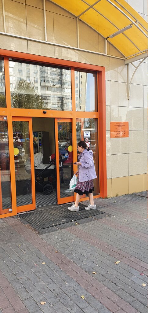 Большой выбор продуктов. Достаточно широкий проход между рядами. Можно пройти с коляской. Цены на фрукты достаточно высокие. Очень большой выбор орехов, цукатов(цены доступные). Все свежее. Есть мини-аптека.