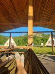 Отдыхали здесь одну ночь большой компанией! Нас очень хорошо встретили, спасибо Татьяне за доброжелательность и гостеприимство. Уютные домики, большая территория и сногсшибательные виды. Были с детьми, им очень понравилась территория, на которой есть где посидеть, полежать, побегать, попрыгать, полазить, искупаться и отправиться на экскурсии по окрестностям. Отдельная благодарность за возможность проживания с собакой. Есть большая кухня и огромный навес со столами, где можно комфортно завтракать в любую погоду. Есть несколько мангальных зон. Самая уютная из них-наверху у озера. Единственное о чем жалеем, что не было возможности остаться подольше. Но мы обязательно вернемся