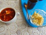 Большой выбор еды - глаза разбегаются! Шашлык, люля-кебаб и манты вкусные, а ,вот, борщ совсем никакой. Лучше не брать. Всегда, в любом кафе беру борщ, фишечка у меня такая - тут обломалась. Но, и без него выбор огромный. Чисто. Народ идёт нескончаемым ручейком. Пока сидели, ели, раздатчице сидеть было некогда.