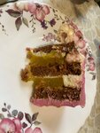 Раньше было лучше. Цены поднялись, качество десертов стало хуже. Теперь не берём их на дни рождения и праздники, за 1200 рублей для маленького тортика можно найти альтернативу, ещё и на свой вкус выбрать. К сожалению, кофейня поменяла начинки и рецептуру коржей. Теперь это приторно-сладкие торты за дорого. В прошлом году покупали морковный торт, коржи были чуть сладковатые, но больше нейтральные, чтобы можно было прочувствовать начинку из сливочного сыра и цитрусового конфи, было очень вкусно (первое фото). Теперь же коржи сладкие, как будто высыпали килограмм сахара на порцию, сильно отдают вкусом имбирного печенья. Начинка из соленой карамели, которая на самом деле очень сладкая жидкая сгущенка (второе фото).