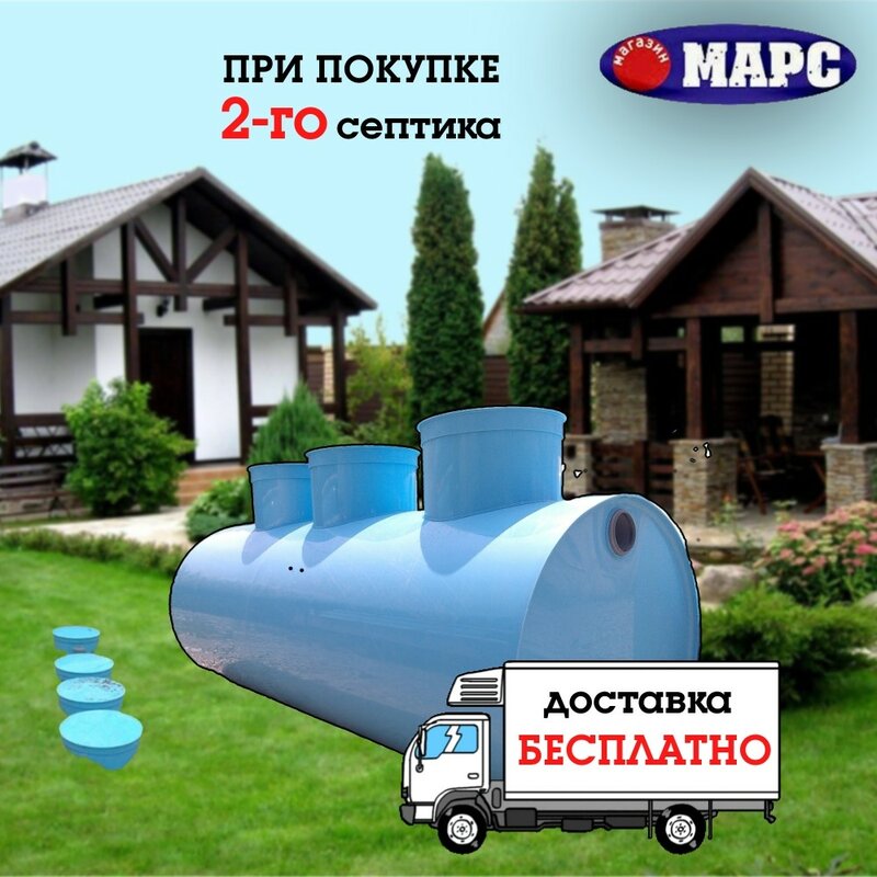 Локально-очистное сооружение "МАРС 1" с полной биологической очисткой. Перерабатывает 1000л в сутки. Работает при близких грунтовых водах.
