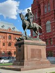 Конный памятник маршалу Победы работы народного художника Российской Федерации скульптора Вячеслава Михайловича Клыкова и народного архитектора Российской Федерации Юрия Пантелеймоновича Григорьева, установленный в 1995 году (к 50-летию Победы) на Манежной площади. Четырехметровый (с конем Кумиром) бронзовый Георгий Константинович изображен в духе соцреализма таким, каким он был на параде Победы в 1945 году. Интересно, что, несмотря на соцреализм, имеет место небольшой анахронизм, ибо маршал изображен с 4 медалями "Золотая звезда" Героя Советского Союза на мундире. Однако четвертой звездой Героя он был награжден только в 1956 году уже будучи министром обороны СССР.