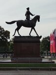 Памятник одному из великих полководцев в истории России, который в трудное время для страны руководил оборонной родины и привел страну к победе против немецких оккупантов. Памятник ознаменовал полководца который принимал парад победы на белом коне. Георгий Константинович Жуков.