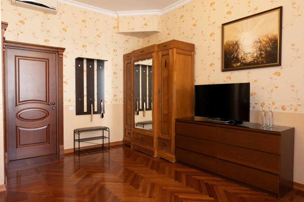 Высокие потолки, большие окна, выходящие в тихий внутренний двор, делают пространство особенно светлым и просторным. Мебель из массива ценных пород дерева, подвесные люстры и паркетный пол придают апартаментам особый стиль, создают атмосферу пок...