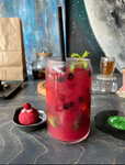 Овсяная каша (на коровьем или растительном молоке), сезонные фрукты, ягоды и орехи, мята, сухофрукты, бельгийский шоколад из какао-бобов Руби, сироп топинамбура