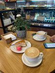 Коассное место зашли выпить кофе. Кофе горячий американо. Вкусные пирожные, но очень сладкие, опять задаюсь вопросом зачем столько сладить. И еще раз убедилась надо брать одно пирожное на двоих. В меню есть завтраки и супы, хорошо для путешественников
