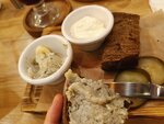 На говядине с домашним смальцем и сметаной, подается с солеными огурчиками и бородинским хлебом
