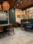 Милое место. Правда, очень маленькое: всего 6 столиков. Была ещё летняя веранда. Но сейчас в связи с ремонтом фасада дома, в котором располагается кафе, на улице столиков нет. Меню небольшое. Есть завтраки (яичница в разных вариантах, сырники и пр.), горячие блюда, гарниры, салаты. Очень понравился салат "Цезарь". Оригинальная рецептура - не классическая (подаётся с яйцом пашот и каким-то соусом). Но вкусно. Хотя вкусы у всех разные. Ещё брали шашлык из куриного бедра. Подаётся с картофелем. Сыну очень понравилось. Официанты - молодые ребята и девчонки. Очень милые и приветливые. Но цены, на мой взгляд, слегка завышены. Хотя понятие "дорого-дешево" очень субъективно. В обще и целом, приятное заведение.