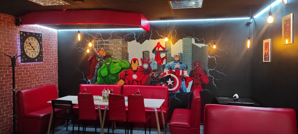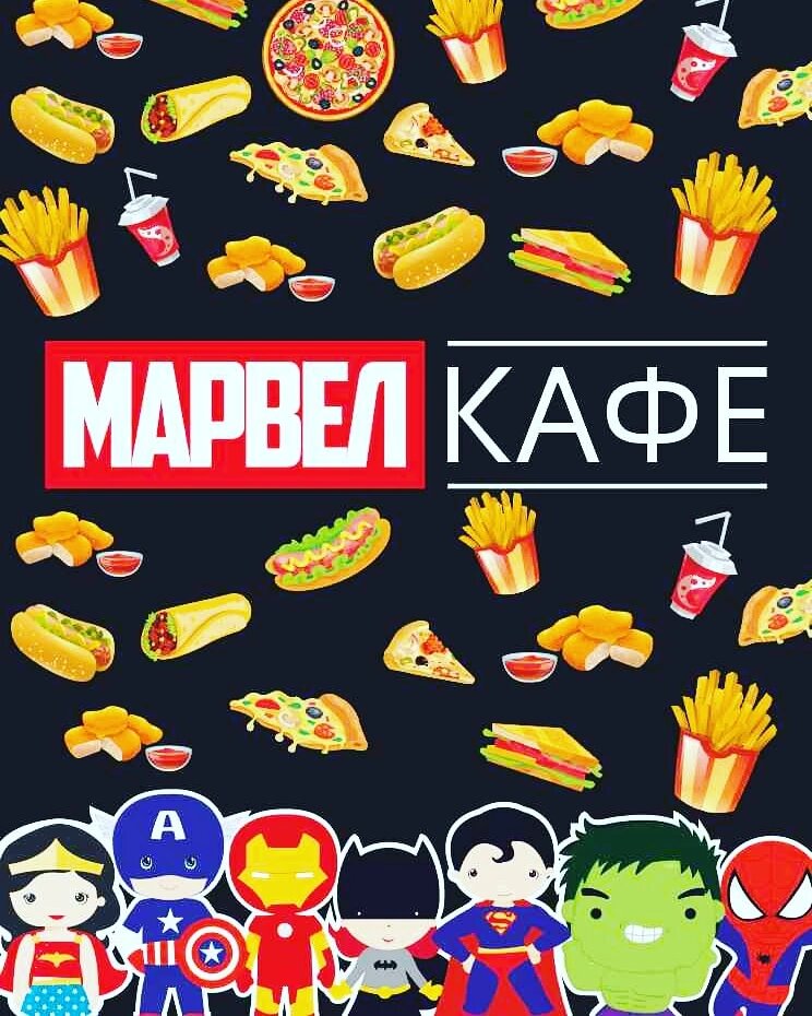 Marvel Cafe is the best place for children's parties! The most delicious food (fries, nuggets, pizza, burgers, shawarma, milkshakes and more) Lots of board games for any company and a pleasant atmosphere!