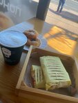 В целом нормальное место, где можно перекусить или взять с собой кофе. Чисто, персонал вежливый, готовят быстро. Ценник средний, наверное, ибо посещаем заведение, когда приезжаем в этот город по определенным делам.