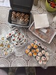 Variety of food:grill, sushi and rolls, pizza, ossetian pies, fixed meal, home cooking, baking, shashlik