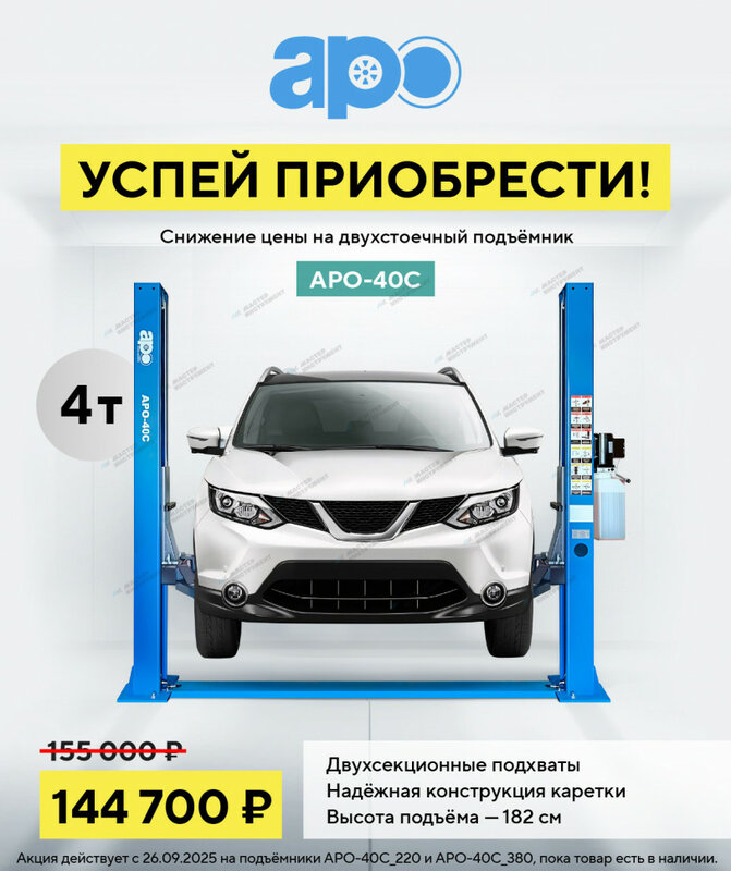 Представляем вашему вниманию надежный двухстоечный подъемник APO-40C_220 с мощностью подъема до 4 тонн. Модель оснащена системой нижней синх...