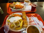 Приехали издалека , решили перекусить где нибудь поблизости . На глаза попалась Вывеска Мастер Кебаб Взяли полный комплекс (солянка, картофель по деревенски, шашлык куриный , салат, соус, морс) Цена для такоооой порции очень даже невелика Наелись от души Сама еда в меру соленая, морковь ча в меру острая Обслуживание норм , все подсказали , все положили , все аккуратно и чисто Думаю , это будет наша точка питания , во время прогулок Спасибо