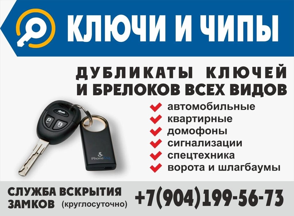 Качество навысоте! Вналичии 99%заготовок! Чипуют и прописывают все виды ключей! Домофоны и чипкарты в наличии! Ремонт пульов и электроприборов! Качественно быстро доступно! Нарезка ключей по личине! И Т. П.