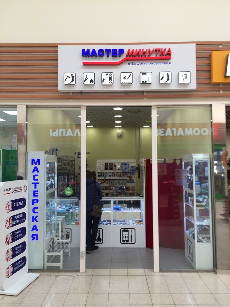 Сдавали обувь, чтобы починить застежку. Мастер сделал все меньше чем за 30 минут, пока мы были в гипермаркет «Глобус». Работа оправдывает свое название «Мастер Минутка». Работа выполнена качественно.
