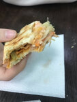 Шаурма хорошая и большая, есть можно, но чего-то не хватает, то ли майонеза многовато, то ли кетчупа мало...