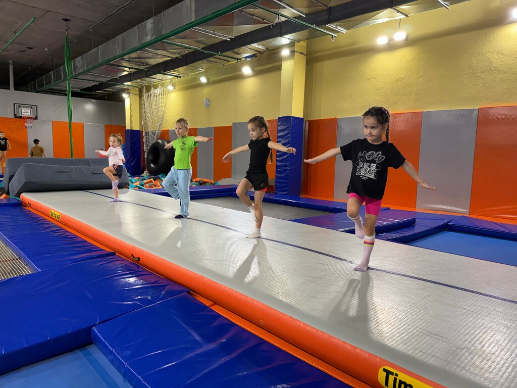 Отличное место! Дети хотят только в этот батутный центр, т.к тут профессиональные инструктора и батуты. Очень чисто внутри, всегда убрано в игровой. Каждый раз что-то новое у них, то игрушки другие, то книги новые. Идеально для тех, у кого малыши, которые хотят поиграть, и дети постарше, которые хотят попрыгать. Сын научился делать сальто именно тут. Рекомендую!