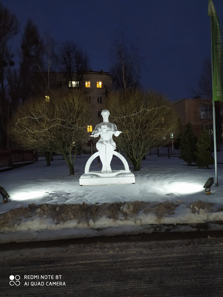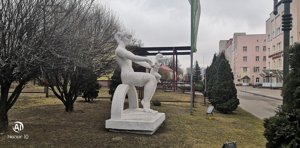 The sculpture looks great on the territory of the perinatal center. And it symbolizes motherhood.