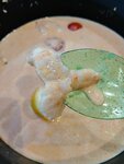 Разачарована этим местом, решила попробовать том ям с курицей и креветками. забираю заказ, сажусь и не наблюдаю в бульоне креветок, возвращаюсь, переделывают заказ (просто при мне *** туда креветки и всё),сажусь обратно и пробую. бульон вообще не острый из-за слишком большого количества кокосового молока, креветки оказались сырыми, грибы просто резина, курица переваренная… это место вообще не рекомендую.