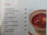 впервые побывала в этом месте. отзывы немного напрягли, но захотелось попробовать самой. выбор блюд достаточный. я заказала суп грибной, из сезонного меню галушки с брынзой, блины с джемом и морс. цены не низкие, но и не удивительные. по размеру порций ноль вопросов, но из отзывов можно сделать вывод, что к выбору блюд стоит подходить внимательно. суп на 4,но картофель немного недоварен, в остальном грибов много, два вида, сытно. порция галушек очень большая. кто любит клецки, галушки и тд зайдет, тесто вкусное, в сыре и с беконом, помимо теста ингредиентов достаточно. ясно, что блюдо жирное из-за сыра и бекона, но на дне оказался слой жидкости миллиметров в 7-8, как будто весь из масла. в принципе, на любитела, я любитель, мне вкусно. блины обычные, джем тоже, три штучки блинов. вот морс балдеж, не приторный, а кисло терпкий, клюквенный вкус. такое и ожидаешь от морса. место не людное, но приятное. главный минус возможно немного большие цены и некоторые блюда не очень,опять же по отзывам, выбирайте для себя, обязательно что-то найдете. как я понимаю, тут ещё и продают пельмени на развес. цена за обед из 4 позиций 1005 рублей