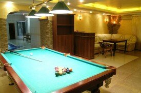 Ну это твердая тройка. Уливительное место. Залететь сюда, если других вариантов нет. Как мне и свезло. Администраторша сказала, что на работе вторые сутки. Видок у нее уставший был. Очень уставший. Но доброжелательная, вежливая, местами крайне ласковая. Сауна потрепанная. Телефон стационарный вырван с корнями. Шары для билиярда частично отсутствуют. Кий в шепки разломанный. Удивили два самореза в стене - видимо висела картина. Твердая тройка. Ничего плохо, ничего хорошего.