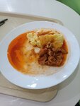 Попробовал поджарку из свинины с пюре. Не могу сказать, что плохо, но жиру налили очень много наверное для веса и пюре не до солено, а на столах никаких специй. И музыка в Матрёшке совсем не располагает задержаться чуточку подольше..