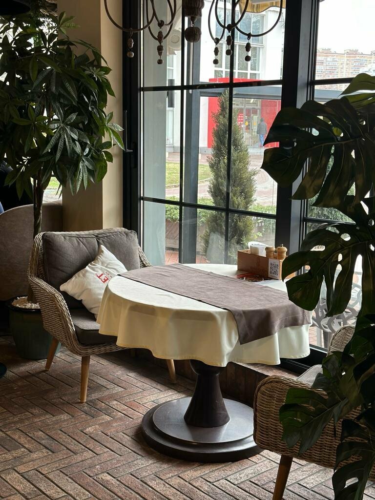 Ездили по делам Краснодар, посетили ресторан днём, так как устраивала локация. Не заходили даже внутрь, поскольку сразу были очарованы местами на улице. Хорошая мебель, прекрасное озеленение, праздничное осеннее оформление! Обслуживание не вызывает нареканий, долгого ожидания не было, блюда вкусные. Особенно порадовал облепиховый чай, так приятно было побеседовать на улице с чашечкой чая под ласковыми осенними лучами солнца. Планирую посетить данное заведение зимой, чтобы оценить комфорт и уют в зале.