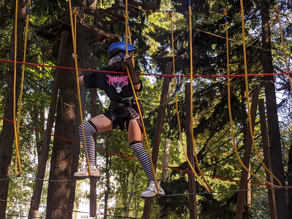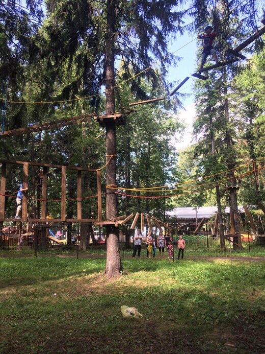 Крутой веревочный парк,есть три высоты. Ян инструктор приятный молодой человек, инструктаж провел понятно и доходчиво. Цены приятные! Рекомендую!!!