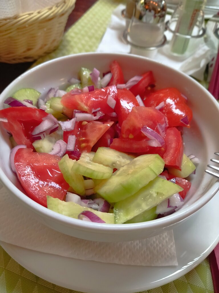 a beautiful place with very tasty cuisine , the waiter advised, told, brought – we are in a gastronomic orgasm. They can make meat right here! we were very hungry, so there are few photos, only a traditional Serbian salad and mom's bread with paprika. everything was brought quickly and beautifully. 11/10 for the unusual opportunity to smoke at the table