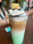 Хотели вкусного кофе с мороженным. Персонал не торопится вообще, заказ ждали 25 минут. Смузи малина мята это сироп малины и сироп мяты со льдом и кучей сахара, видимо хозяин заведения не знает что тако смузи.