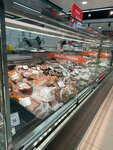 A good grocery store. There is everything you need. There is a department with fresh meat, sausages and cheeses, dairy products. There have never been any complaints about the quality and freshness of the goods. Fresh bread is disassembled quite quickly - therefore it is better to come for it before lunch. There are self-service ticket offices.