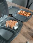 Заказывала здесь роллы 11.10.25. Привезли за 1ч 50 минут. Упаковка, допы, палочки брендированные, имбирь вкусный, морс облепиховый тоже приятный, на этом плюсы закончились. Салат чука с железистым привкусом, недоваренный рис в роллах, бледный, безвкусный лосось, который местами отсутствует по бокам и разваливающийся нори. Впервые заказывала, не рекомендую