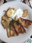 Всегда проходила мимо и мечтала зайти, внутри уютный интерьер, витрины аппетитно оформлены. Наконец решилась зайти, угостить и удивить мужа. Спасибо удивились 😅 Заказали капучино и американо, эспрессо горчит, но это не так страшно. Не всегда зависит от навыков баристы К кофе взяла пашот с беконом. Рецептов приготовления пашота много, пробовала в разных кафе, даже дома получается аккуратнее и вкуснее Если вы хотите вспомнить вкус детства, то попробуйте галет с лососем. Морковка приготовлена так как в садике. Осторожней в рыбе попадаются косточки Спасибо повару и официантам за классический блинчик с нутеллой и фильтрованную воду. Очень вкусно