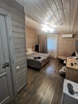 Останавливались в конце августа. Бронировали за пару суток. Персонал приветливый! Отель возле дороги. Номер не большой, но уютный. Находится в деревянном домике. Их там штук пять или шесть, в каждом по два номера. Внутри приятный запах свежего дерева. Спальные места удобные! Постельное бельё хорошее. Мебель новая. Душевая кабина, туалетные принадлежности фен, холодильник, телевизор, чайник в номере. Было жарко, но кондиционер помог! 😀 Всё чистенько и аккуратненько. Из недостатков плохая шумоизоляция. Слышно соседей и шум с дороги. Поэтому домик брать лучше подальше от дороги. Но нам уставшим было пофиг. При отеле парковка под видеонаблюдением. На ресепшен можно купить дорожной еды. Кафешки там нет. Заезд в отель через заправку Роснефть.