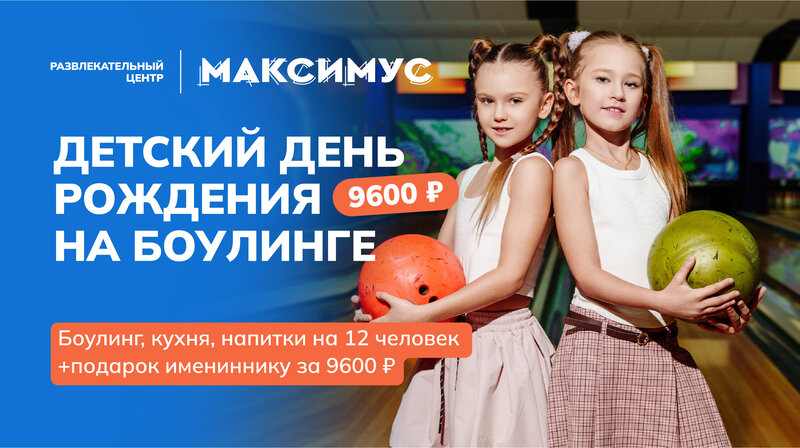 🎉 Детский день рождения без хлопот — всего за 9 600 ₽ в РЦ «Максимус» Вы просто приводите детей — остальное уже организовано. 🎳 В програ...