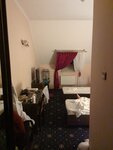 Заехали с мужем поздно ночью, пробыли двое суток. А вообще мы заехали с группой, нас всех заселили на мансарду. Не понравилась гостиница. В номере свет работает только от карты, которая открывает номер, при чем об этом нам не сообщили, открыли дверь, в номере темно, как быть не понятно, один из соседей спустился к администратору, там видимо уже пояснили. 3 этаж мансарда, номер жутко душный, штор плотно закрывающих окна, нет. 2 односпальные кровати соединены вместе, с топпером. Но спать на этих кроватях просто невозможно, на неё только начинаешь садиться она скрипит, скрипит везде и вся. Т.е . Сна на ней нет никакого, при малейшем движении страшный скрип. Слышимость ужасная, в соседнем номере слышно как закрывают прикроватные тумбочки и т.д. В номере нет даже чашек и чайника, чтобы утром попить чай. Но, есть заказ завтрака. Заказали кофе утром, чайник на двоих, при чём на двоих приносят одну чашку, очень странно. Администратор не помнит, где у неё живёт семейная пара, а где один, видимо. Через входную дверь виден свет в коридоре, щели.