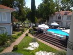 We have been staying in this hotel for 2 years, very pleasant atmosphere, flowers, greenery. What is very important, cleanliness in the rooms, change of towels every day, bed linen every 3 days. The bed linen is clean, ironed, and the mattress is comfortable. Cleaning every day. The rooms are spacious, with very few balconies, but this is not a problem, you can sit by the pool. Tea, coffee (instant) sugar, dishes 24 hours. There is no kitchen for cooking, there is a barbecue. The only wish is to finalize the breakfasts, add at least a pancake, pancakes) the girls work there are very friendly!