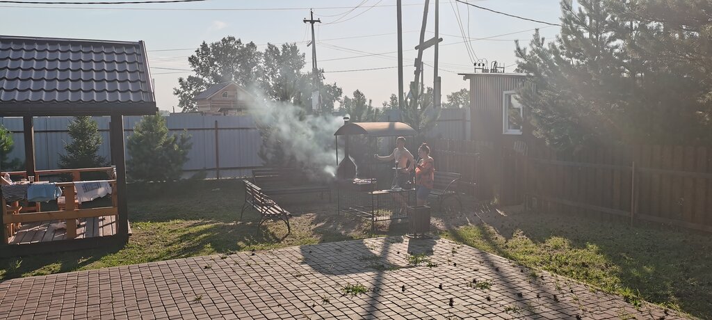 Красивое место, рядом с Енисеем, неподалеку есть карьер, в котором купаются. Что касается самого дома, то вместимостью он гораздо меньше, чем указано в описании. (брали на 12 чел.) В доме 2 этажа, на втором этаже 2 спальни с 2х кроватями и 1 односпальной + диван, который не раздвигается. На этом всё!) На первом этаже кухня, туалет, парная.
