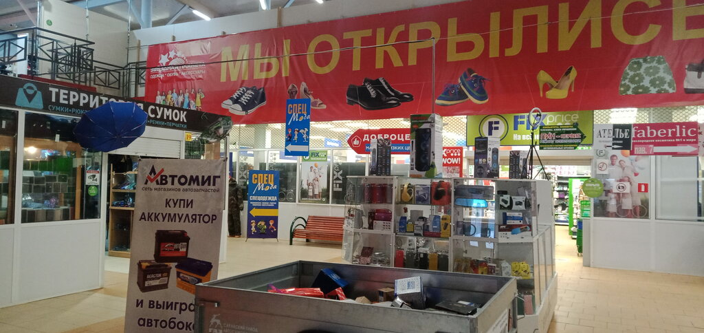 Первый этаж: прямо фикспрайс-ничего особенного. Справа в основном женская одежда, выбор средне. Слева сумки/рюкзаки. Далее детская и подростковая одежда в ассортименте. Далее спецодежда и магазин "доброцен", ассортимент не плохой. Второй этаж: большой выбор обуви, одежды, женская, мужская, детская и подростковая. Хороший выбор товаров, качество так себе но бывает можно и на нормальное нарваться.