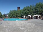 В целом сам отель интересный, но в номерах всё очень скромно, но это и по фото в интернете было понятно. В эконом стандарт у вас будет не самая уютная кровать, очень маленькая душевая кабина, но всё чисто и по своему уютно, но лично для меня комфорта не хватает, дома лучше. Нет чайного набора и чайника соответвенно. В ресторане кухня отстаёт, цены высокие, а качество так себе. В тарелке оформлено красиво, но даже лосось умудрились испортить, разморозка и приготовили плохо, люля кебаб посредственный, да и суп пюре грибной был пересолен. Бассейн на территории не глубокий, для мужчины ростом 193 по пояс, и очень пахнет хлоркой, нет не так, очень очень сильно пахнет хлоркой и глаза режет просто стоя рядом у бассейна. Смущает конечно что нахождение на территории бассейна и озера платная, и для гостей не гуманно высокая цена, 400 рублей с человека на 3 часа. Мы приехали в 16:30, когда и солца особого нет, платить за 3 часа ребята? Ну это ту мач #ящитаю Территория от комаров не обработана, ужин на террасе вечерний променад был испорчен этими кровососущими. Радует персонал, к нему претензий нет совершенно, ребята стараются. Администратор Никита на ресепшн выдал хороший номер с прекрасным видом, а парень продающий мороженое у бассейна тоже был очень приветлив. Очень понравилась обстановка и мебель в ресторане, красивое освещение, светильники и торшеры, стулья. Дизайнера очень хвалю, его работа со вкусом!