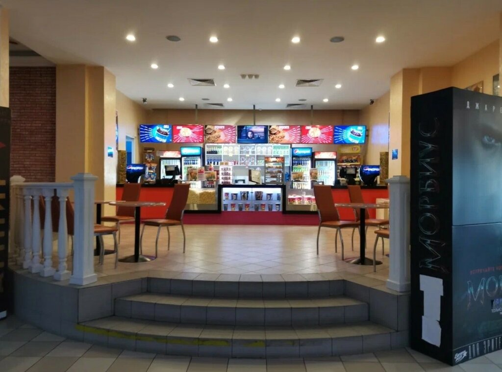 Очень удобное расположение, быстрое обслуживание , приятный и вежливый персонал . Милый интерьер и располагающая атмосфера . Любимый кинотеатр . Напитки и блюда 👍
