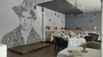 Стилизация под советские времена. Но Маяковский - это 20-е годы, а все артефакты - из 60-х. Кроме граммофона из 19 века (который на самом деле имеет современные внутренности). К нему старые пластинки 60х-70х на 33 оборота, которые он крутит на 45 оборотов, и никто не знает, как менять скорость. Кухня - не особо, хотя и нельзя сказать что плохо. Диваны неудобные- слишком низко сидишь. В общем, есть над чем работать.