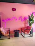 Очень симпатичное розовое местечко, которое только что открылось в Дмитрове. Прикольное сочетание интерьера: розовый цвет + чёрный + очень стильная каллиграфия. Приятный кофе и банановый пп десерт. Очень жду, когда будет еда, с удовольствием приеду сюда с дочкой 💗