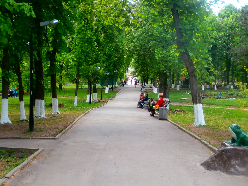 Отличный парк. Хорошая детская площадка. Тренажёры. Часто ходим к водоёму кормить уток. В котором можно увидеть не только уток, но и аистов, черепах и даже ондатру,которая живёт на другом берегу. Широкие дорожки для прогулок на велосипеде и самокате. Всегда чистенько. Много зелени. Ухоженный.